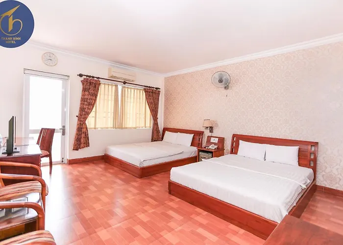 Thanh Bình Hotel cung cấp 16 phòng với ban công, TV màn hình phẳng với các kênh vệ tinh và điều hòa nhiệt độ, đi kèm ấm đun nước điện và tủ lạnh. Trong số các tiện nghi khác, nhà vệ sinh riêng, bồn tắm và vòi hoa sen cũng được cung cấp.